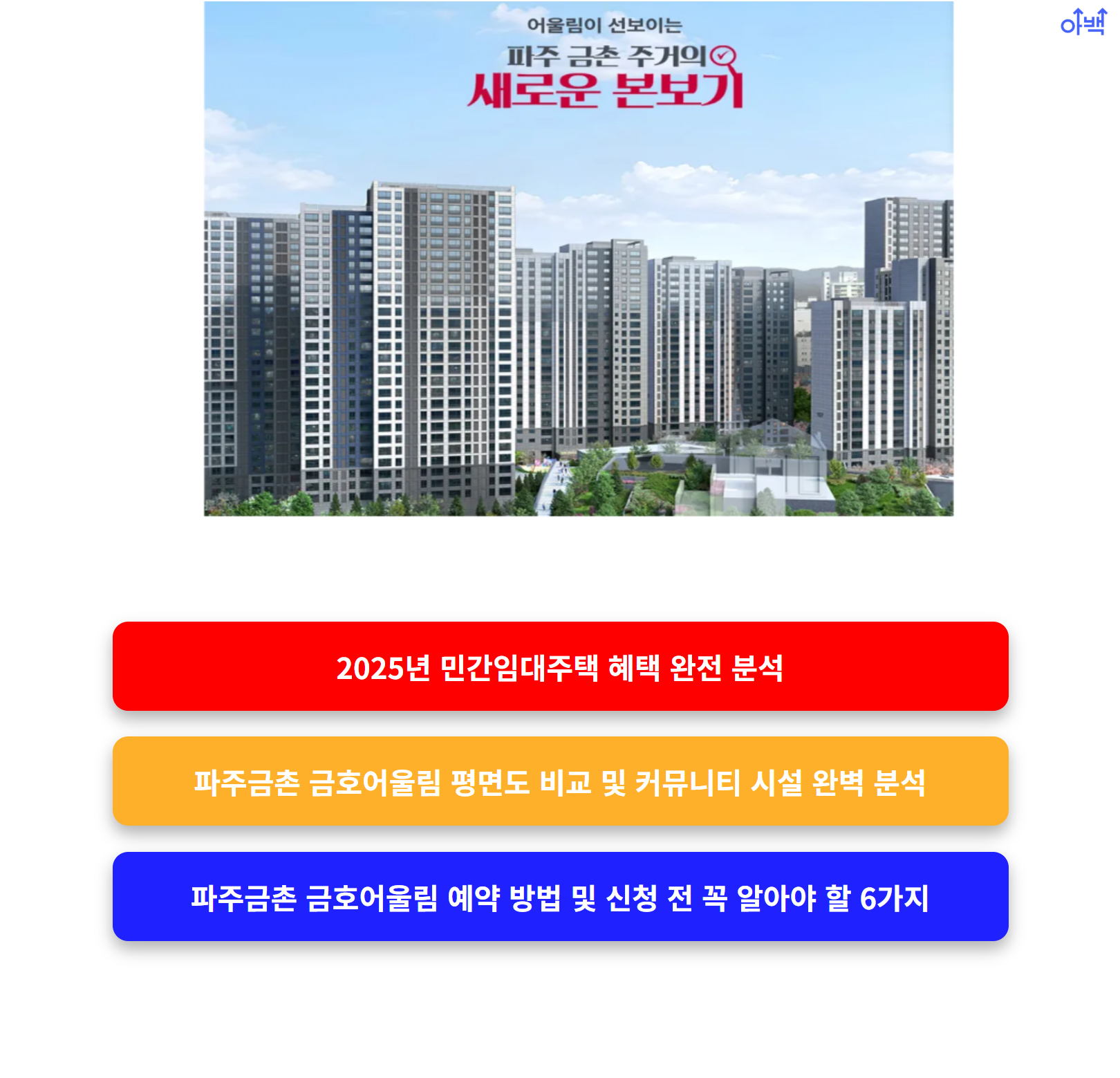 그중에서도 파주금촌 금호어울림은 지리적 장점과 생활 인프라, 브랜드 품질까지 갖춘 프리미엄 민간임대로서 눈여겨볼 만합니다.